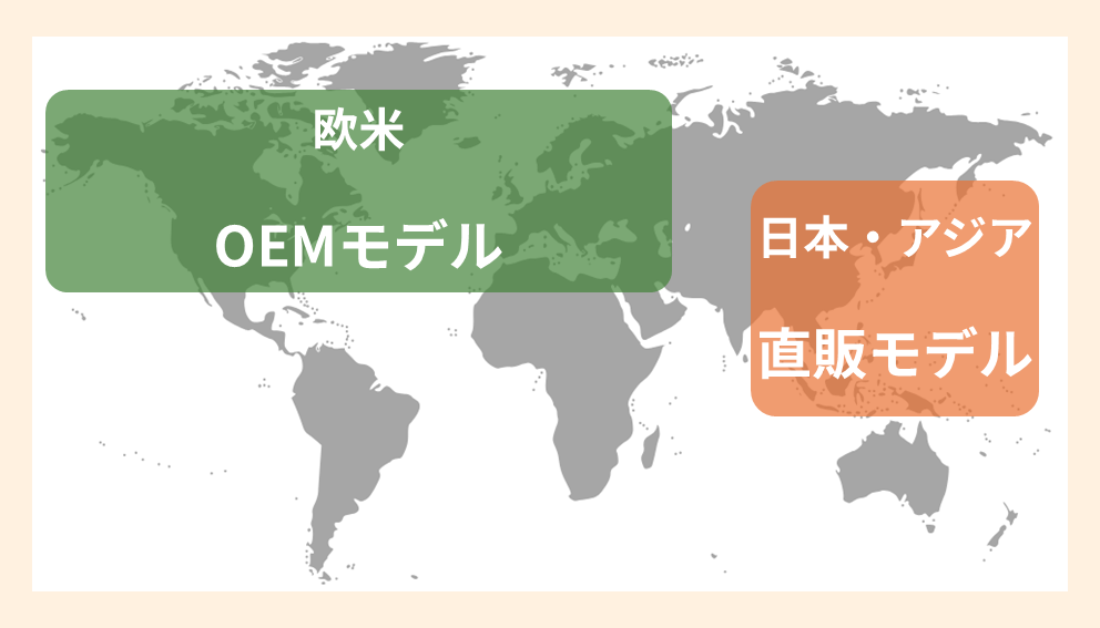 下記のユーザ企業の例では、日本・アジアと欧米で、ビジネスモデルが異なります。