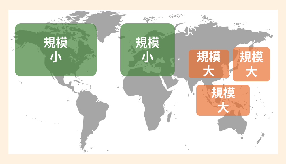 業務プロセスの共通性は大きいものの、地域毎のビジネス規模の差が大きい場合があります。