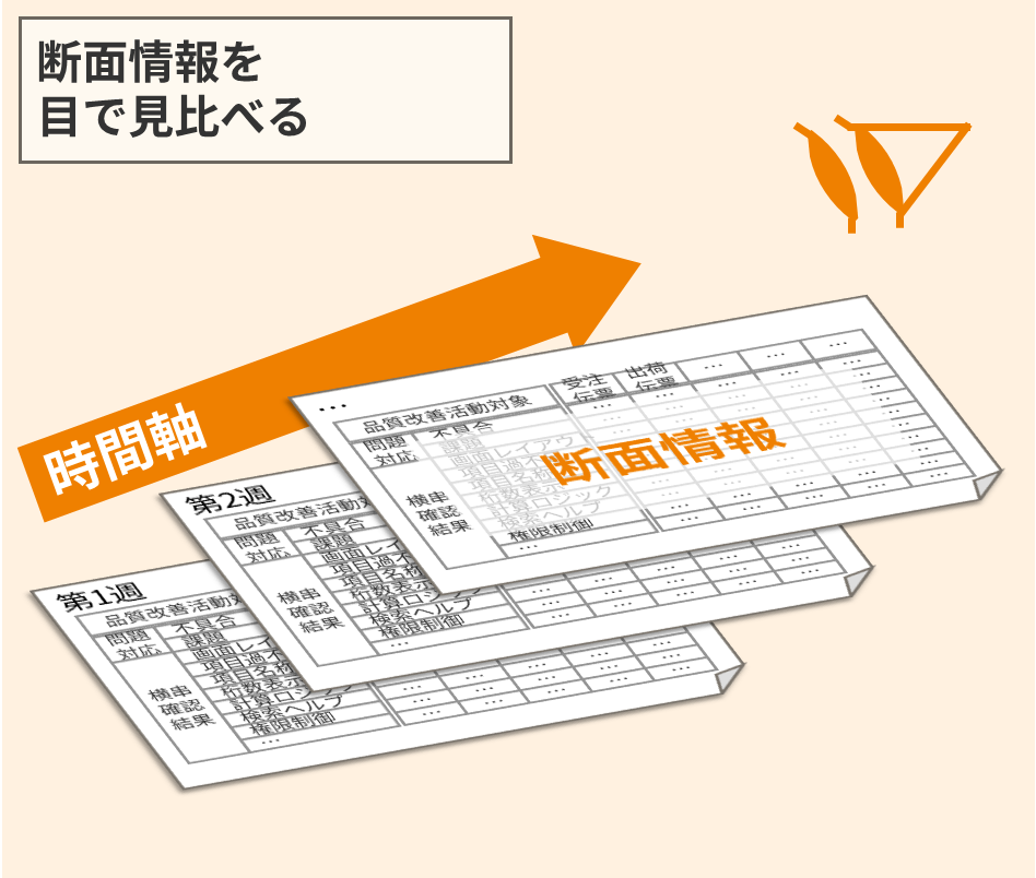 ただ、そんなときでも、状況変化をつかみにいくことは大切です。そこで、それぞれのタイミングの断面情報を並べて見比べるのです。そうしてみると、あるタイミングの断面だけを見ているだけでは分からなかったことが見えてきます。