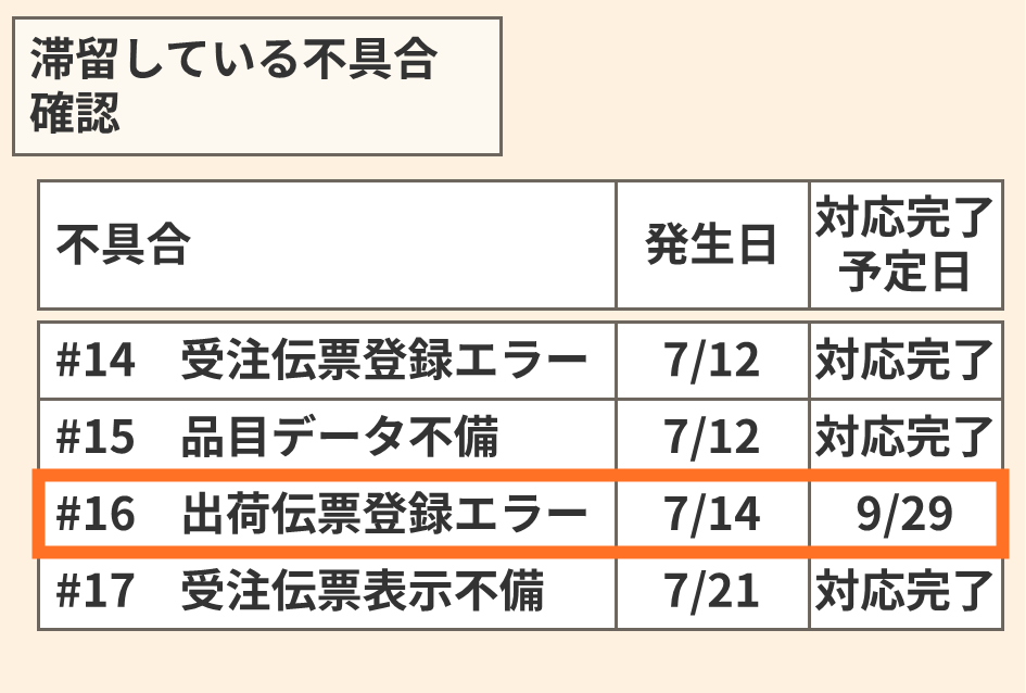 [確認例② 不具合対応が遅れていて、シナリオが進まないのか]