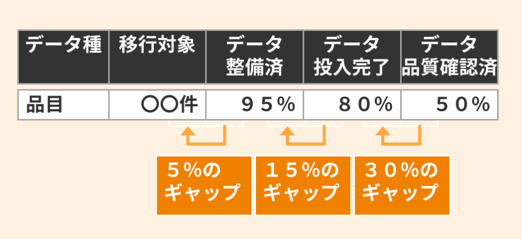 前述のように、移行データの品質管理で重要なのは、母数を把握して、100%になるように追っていくことです。