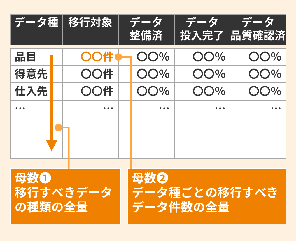 - 母数❷ データ種ごとの移行すべきデータ件数の全量