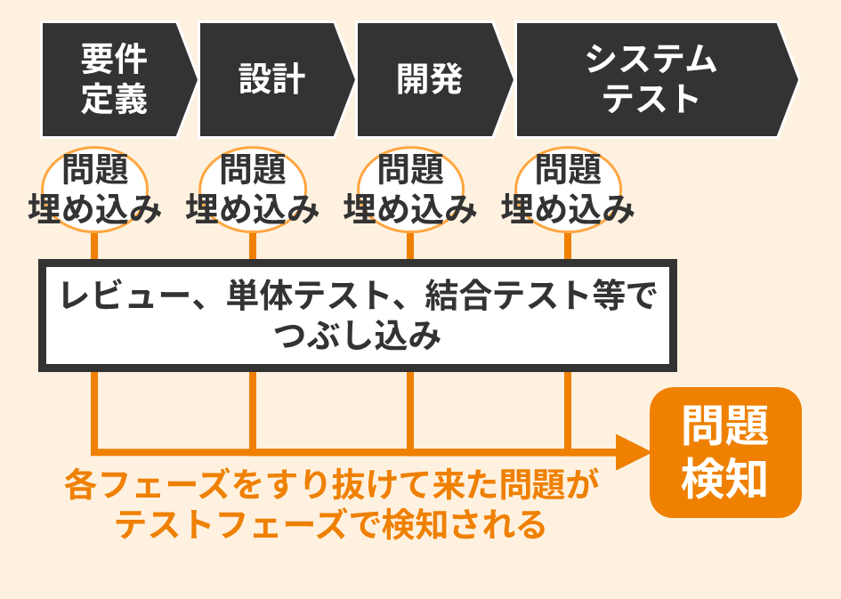 人間ですから、思い込みもありますし、想像力の限界もあります。そのため、一定量の問題が発生し、つぶし込み切れずに、システムテストまで持ち越されることは避けようがありません。