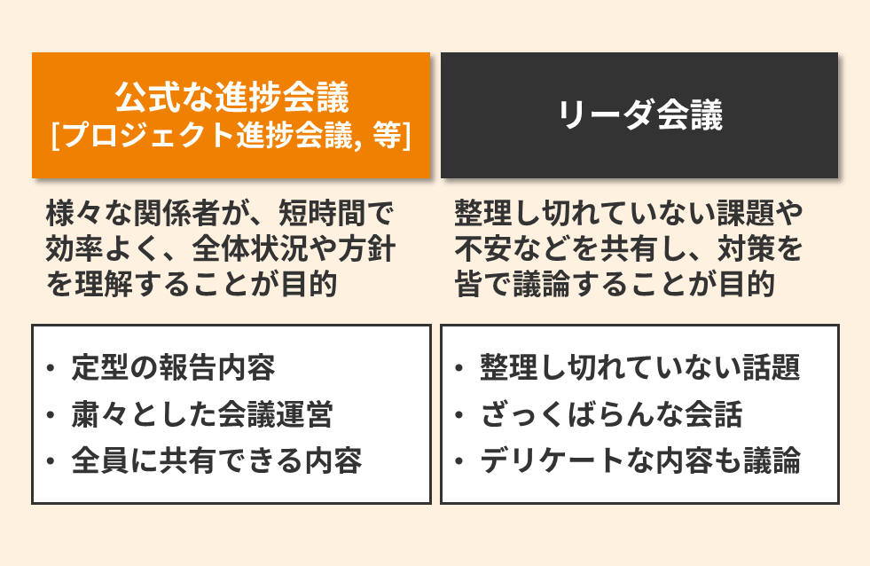 以前の回 "リーダ会議で喧々諤々できているか [公式な会議体を補完する役割]" では、リーダ会議の重要性についてお話しました。今回は、公式な進捗会議であるプロジェクト全体進捗会議がテーマです。