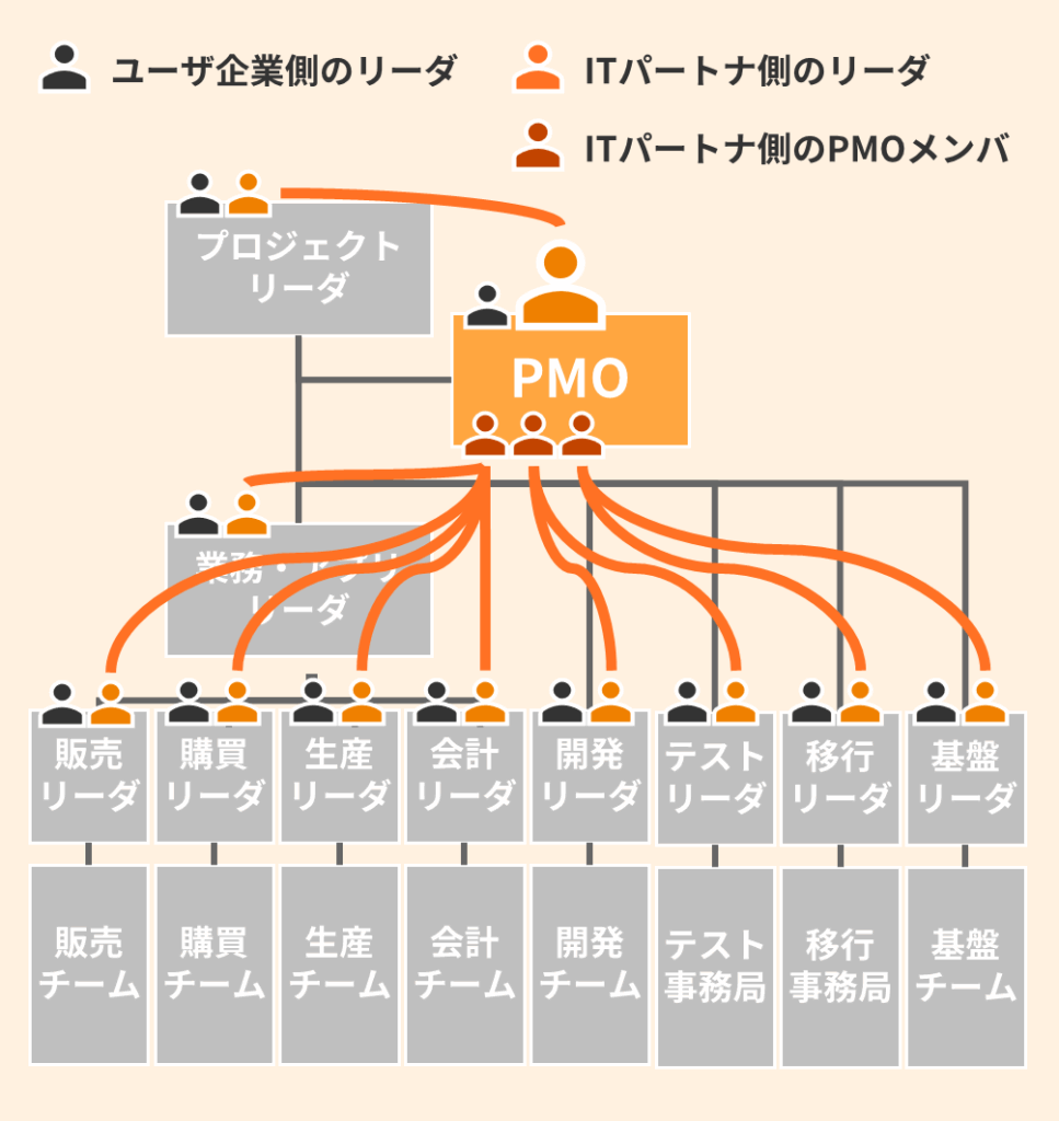 そういったなかで、ITパートナのPMOが中心となって、情報流通を担いますが、そのもとになっているのが、リーダ会議になります。リーダ会議で、PMOが色々な情報を流通させるのです。