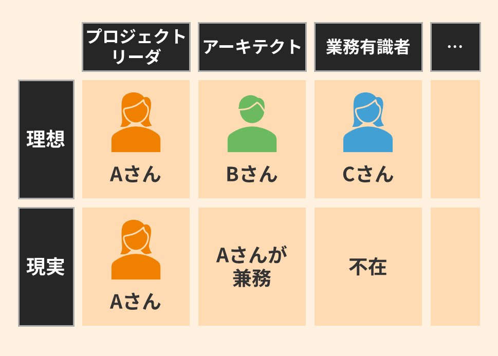 IT業界では慢性的な人材不足が続いており、プロジェクトに必要なスキルを持つ人材を十分に揃えることが難しいケースは珍しくありません。その結果、本来は分離すべき役割を一人が兼務したり、経験が十分でない人材を要所に配置せざるを得ない状況が生まれます。
