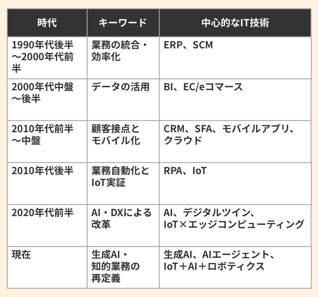 まずは、1990年代後半以降のシステム導入におけるキーワードの変遷を振り返りたいと思います。