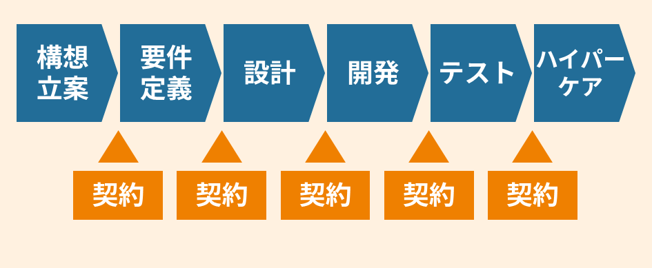 大規模プロジェクトの場合、金額規模も大きく、期間も長いです。そこで、大きなフェーズごとに、契約を刻むことが多いのではないでしょうか。