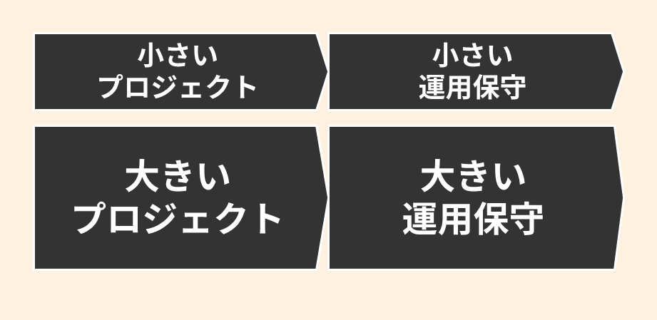 一般的に、小さなプロジェクトが本番稼働すると、運用保守体制も小さいです。逆に、大きなプロジェクトの場合は、運用保守体制も大きいことが多いです。